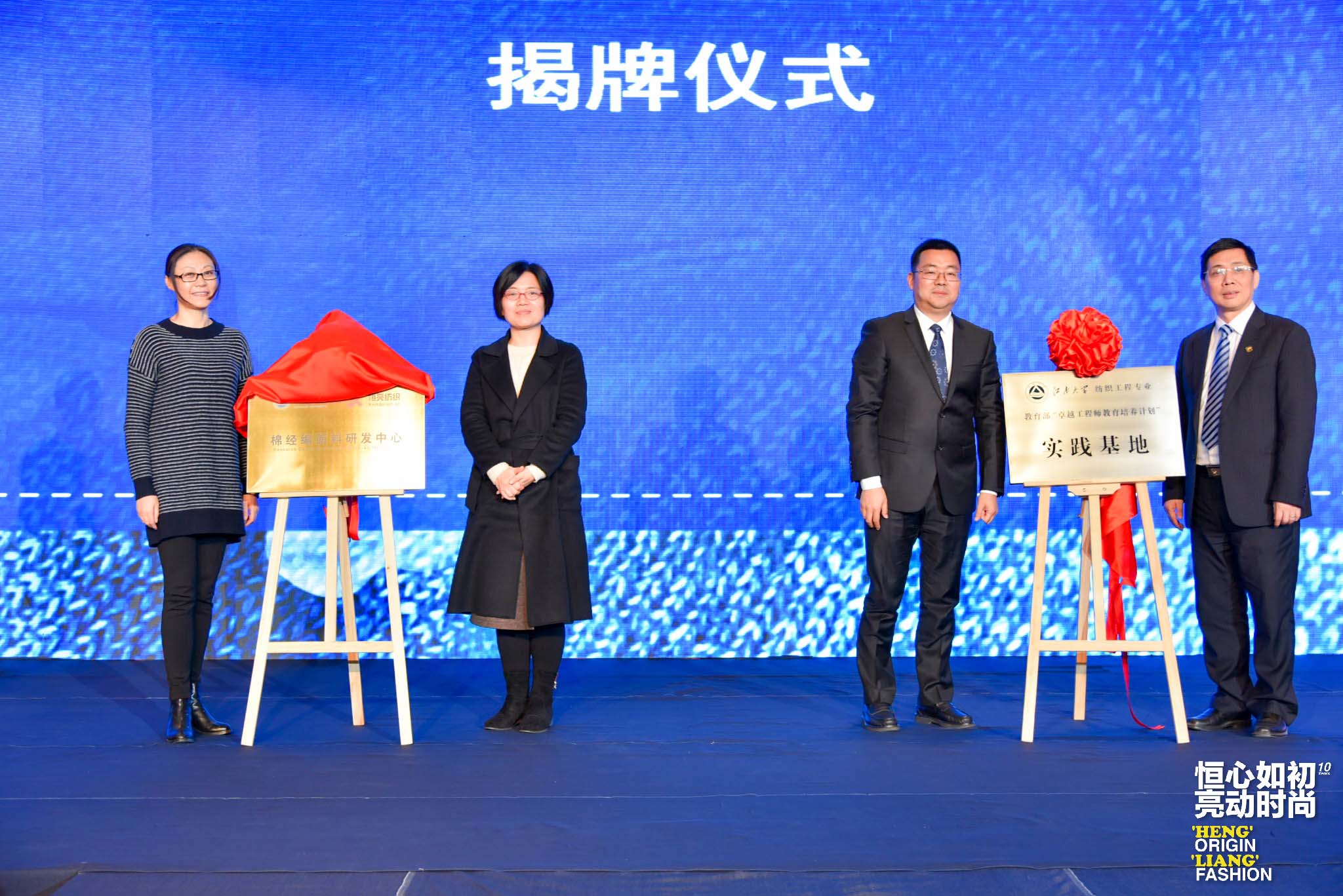 与此同时,教育部“卓越工程师教育培养计划”实践基地、“江南大学恒亮纺织棉经编面料研发中心”两项荣誉牌匾也在此次系列活动中成功揭启,为未来中国针织牛仔面料研发事业的更多可能积蓄力量!