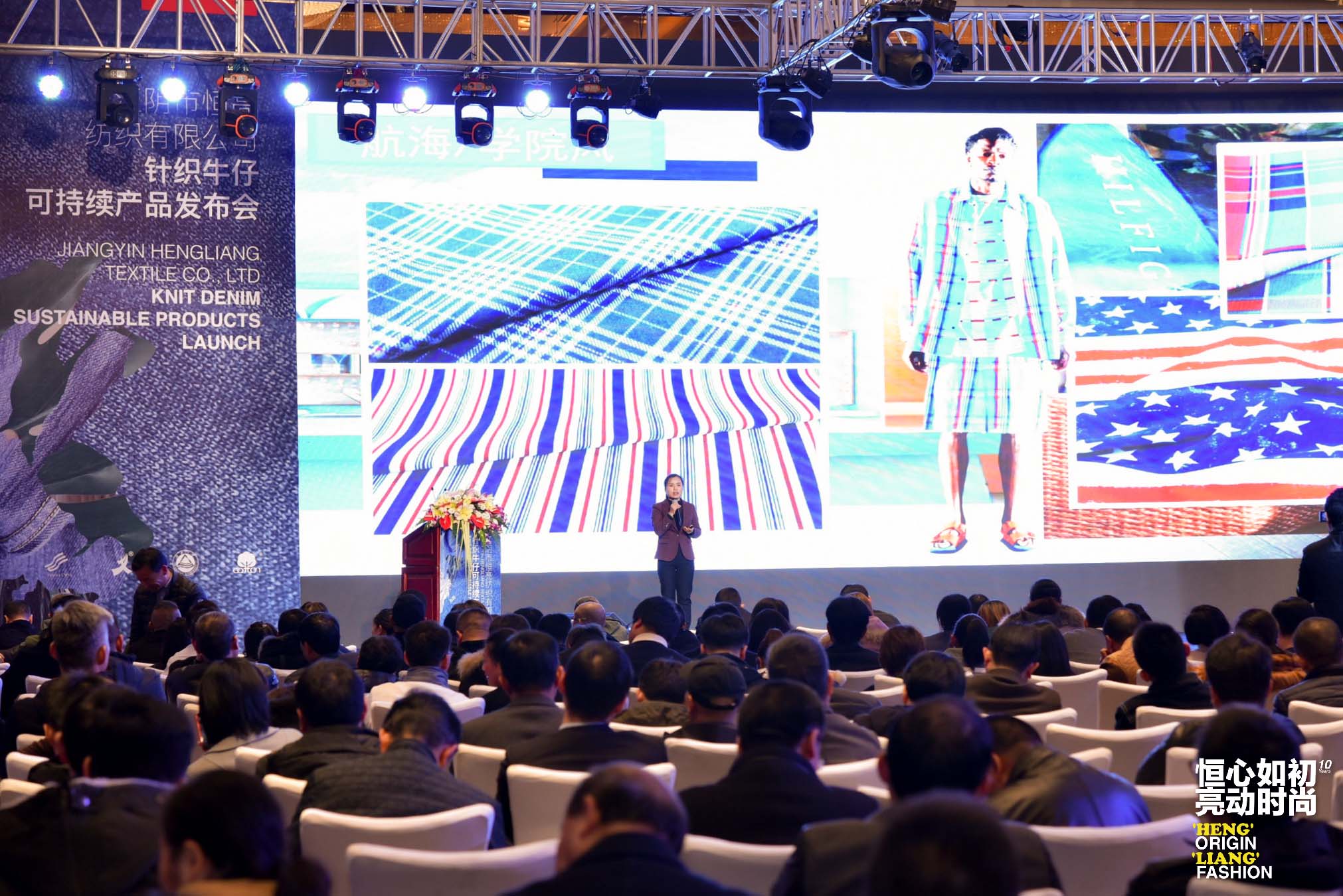 此次针织牛仔可持续产品发布会系列活动以“恒心如初,亮动时尚”为主题,正值恒亮纺织成立10周年之际,期间不仅有丰富的产品展示,还有主题演讲、时尚秀演等多样内容,在主办单位中国纺织信息中心、国家纺织产品开发中心和江阴市恒亮纺织有限公司,以及协办单位国家纺织产品开发基地、中国纺织面料流行趋势研究与发布联盟(以下简称,趋势联盟)的共同推动下,又有江南大学教育部针织技术工程研究中心和美国棉花公司的大力支持,此次系列活动精彩呈现了中国流行面料中“针织牛仔”系列产品的开发实力与时尚魅力!并充分彰显了恒亮纺织10年来的优秀发展成果,为中国纺织面料企业的整体形象增添了难得的靓丽一笔!