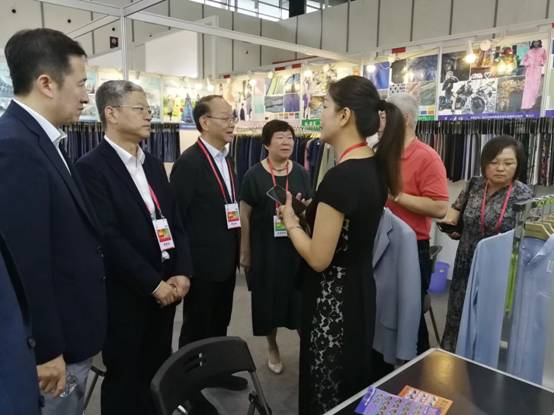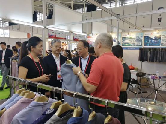 展会期间,中国纺织工业联合会副会长夏令敏、江苏省纺织工业协会会长谢明亲临我公司展位,领导们以专业的眼光和独道的见解在实地接触过我们的面料后的给予了高度赞赏。